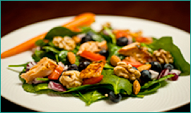 - Dinner: Grilled chicken, brown rice/pasta, vegetables & salad